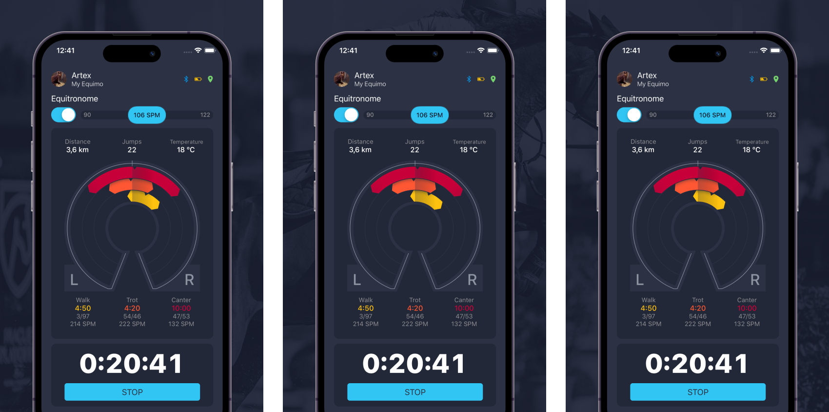 On the screen, you can see a recording of a significantly unbalanced training session. Almost more than 80% of the movement in all gaits was on the left lead. If this was not the goal and the rider was not trying to compensate for something, this could cause a potential problem. Prolonged uneven work will sooner or later manifest in injury or health issues.